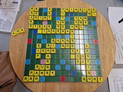 I attended the Reading Scrabble tournament from Saturday the 3rd until Thursday the 8th January. This was the first time I have ever played for so many consecutive days. There were 46 games in all and I only won 21.5 of them which was a bit disappointing. My best day was Monday 5th January when I won 7 out of 8 of my games. It also happened to be my daughter’s birthday so maybe she unwittingly brought me some luck.